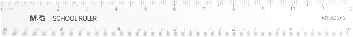 - مسطرة بلاستيكية من إم آند جي تشنغوانغ، قياسات دقيقة وخفيفة الوزن، 30 سم، رقم المنتج: ARL960X0