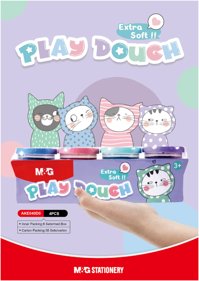 معجون تشكيل M&G Chenguang، بلاستيسين، مجموعة قطط متنوعة، 4 ألوان، غير سام - رقم المنتج: AKE040D0