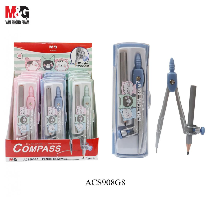 بوصلة رسم هندسية دقيقة من إم آند جي تشنغوانغ، مزودة بقلم رصاص خشبي، قابلة للتعديل، متينة - رقم المنتج: ACS908G8