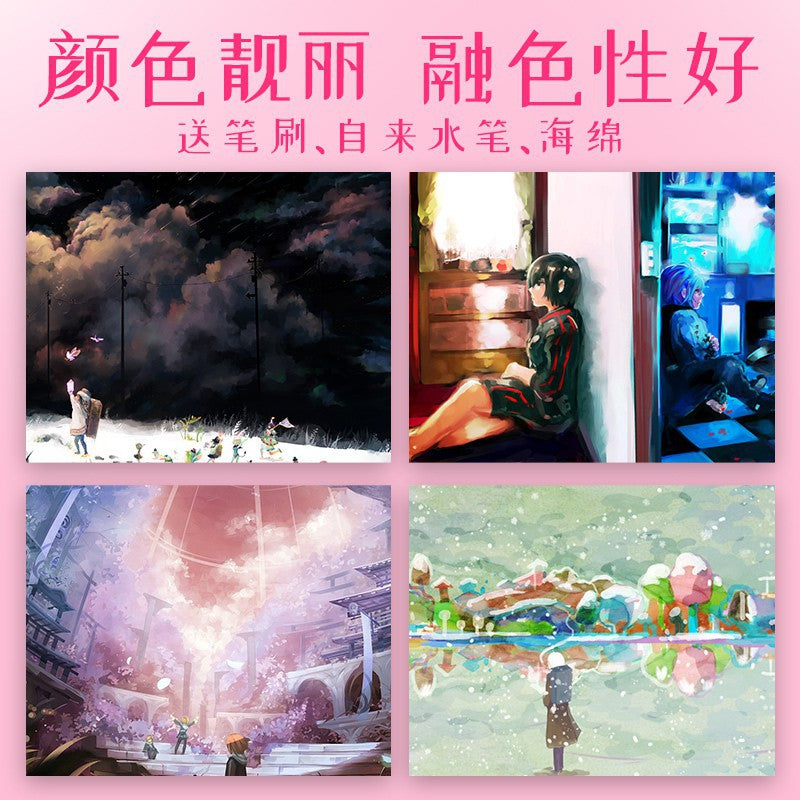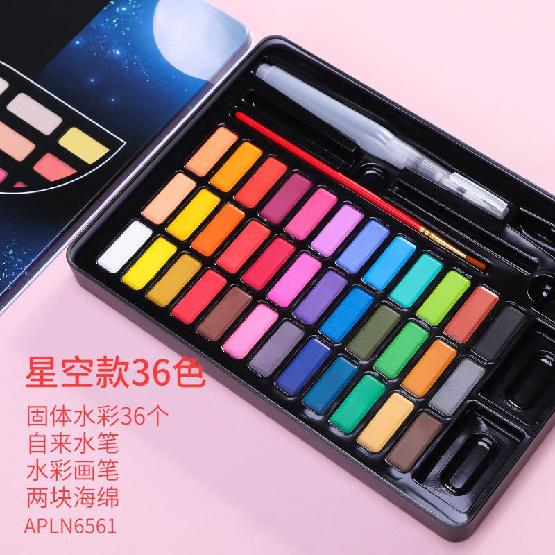 - المحتويات: 36 لونًا مائيًا صلبًا، قلم حبر واحد، فرشاة رسم واحدة، إسفنجتان. مدة الصلاحية: ثلاث سنوات