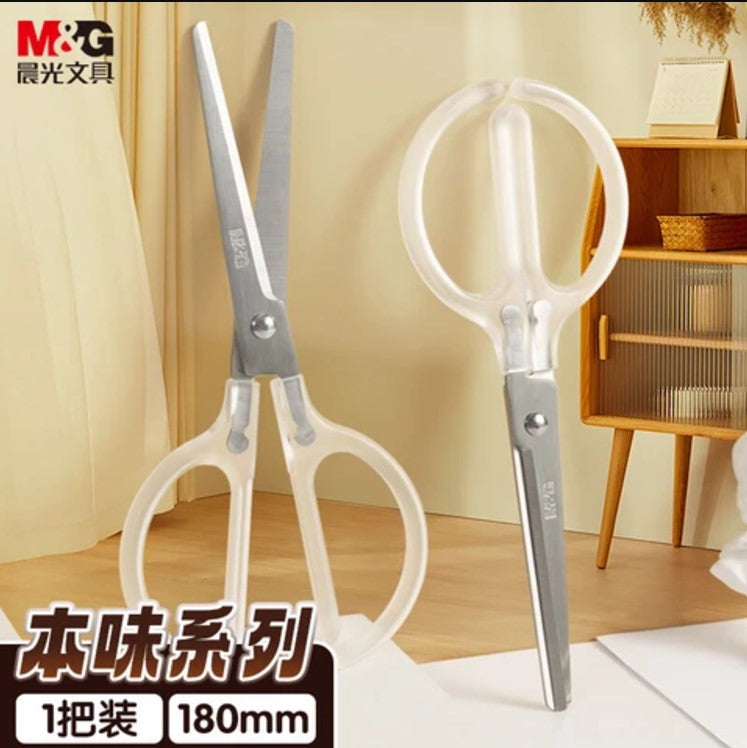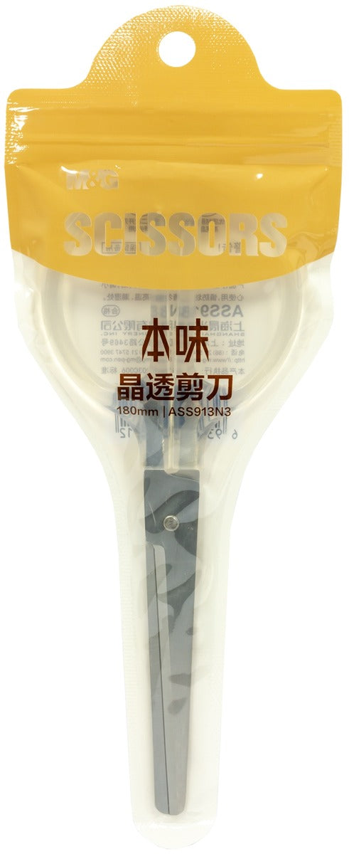 مقص إم آند جي تشنغوانغ المصنوع من الفولاذ المقاوم للصدأ، للاستخدام المنزلي، بمقبض شفاف كريستالي، طول 180 مم - رقم المنتج: ASS913N3