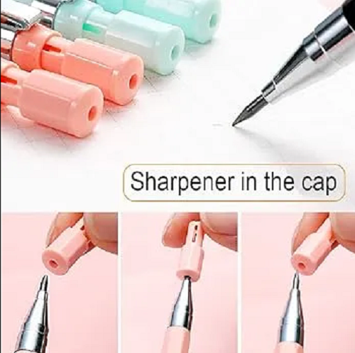 - يوجد مبراة مدمجة في الجزء العلوي من القلم، مما يجعله أسهل في الاستخدام.