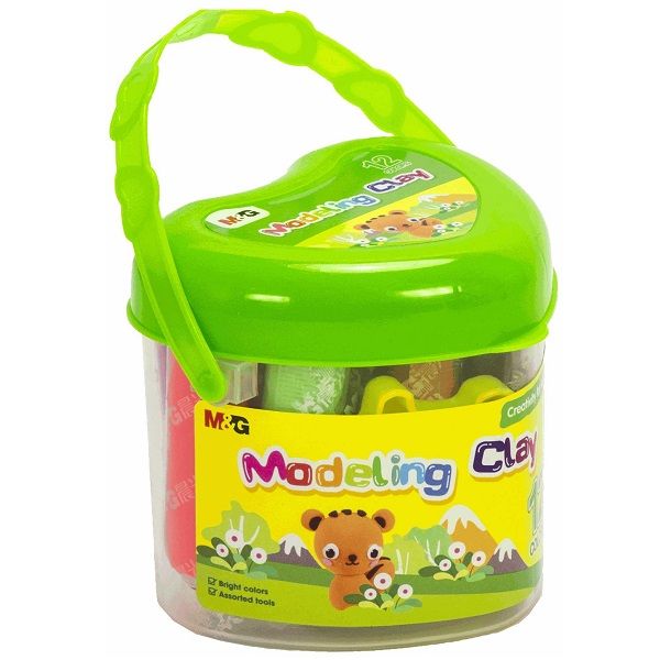 علبة معجون اللعب من إم آند جي تحتوي على 12 لونًا بألوان زاهية وفاتحة متنوعة مع أشكال/قوالب للأطفال لإظهار أفكارهم الإبداعية أثناء وقت اللعب.