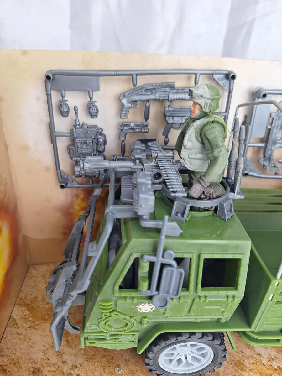صُنعت هذه المركبة اللعبة بعناية فائقة بالتفاصيل، وهي تجسد متانة وقوة الآلات العسكرية الحقيقية.
