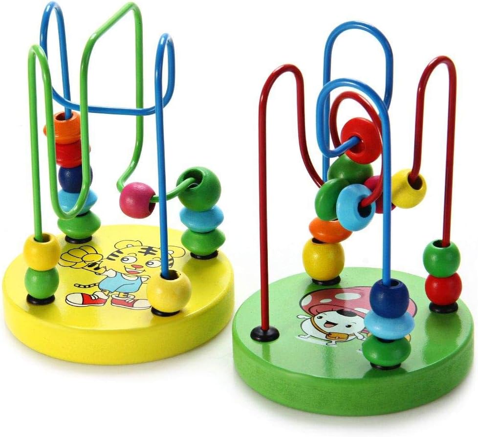 - لعبة تعليمية صغيرة ملونة للأطفال، لعبة خشبية حول الخرز - قطعة واحدة