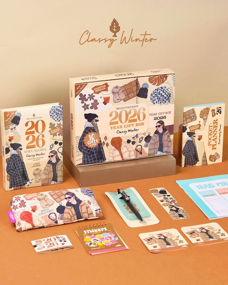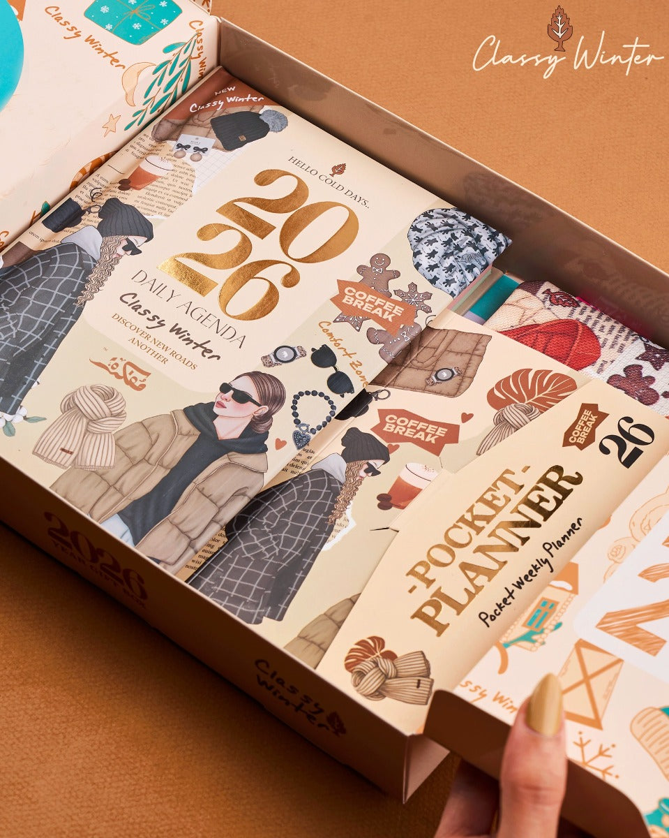 - صندوق هدايا الشتاء الأنيق لعام 2026 عبارة عن مجموعة أدوات مكتبية وأسلوب حياة منتقاة بعناية بشكل جميل، مصممة لعشاق السفر، والمخططين، والطلاب، وأي شخص يستمتع بالتنظيم الأنيق.
