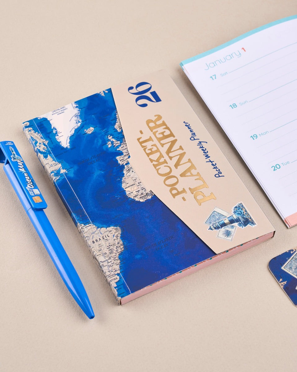 مصنوع من مواد عالية الجودة - صندوق هدايا خريطة المحيط لعام 2026 عبارة عن مجموعة أدوات مكتبية وأسلوب حياة منسقة بشكل جميل مصممة لعشاق السفر والمخططين والطلاب وأي شخص يستمتع بالتنظيم الأنيق.