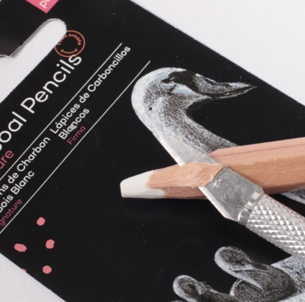 - نظراً لطبيعة أقلام الرصاص الفحمية الهشة، يُنصح دائماً ببريها باستخدام سكين هوايات - لا يُنصح باستخدام مبراة أقلام الرصاص.