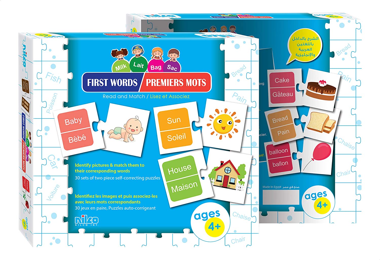 بطاقات نيلكو التعليمية للكلمات الأولى (الإنجليزية والفرنسية) - 60 قطعة - رقم: 20313، هي الطريقة الأمثل لمساعدة طفلك على تعلم لغات جديدة وتنمية مهاراته الأساسية. تحتوي هذه البطاقات التعليمية على 30 مجموعة من الألغاز المكونة من قطعتين، ذاتية التصحيح، تعرض صورًا وكلماتها المقابلة باللغتين الإنجليزية والفرنسية. تساعد كل مجموعة طفلك على تحديد الصور ومطابقتها مع الكلمات المناسبة، وتعلم أسماء الأشكال باللغتين. هذا يُحسّن من قدرته على التمييز البصري، والتركيز، والوعي بالشكل والحجم والنمط، بالإضافة إلى مهارات الملاحظة الدقيقة. صُنعت هذه البطاقات التعليمية من مواد عالية الجودة، وهي الطريقة الأمثل لمساعدة طفلك على تعلم لغة جديدة وتنمية مهاراته الأساسية.