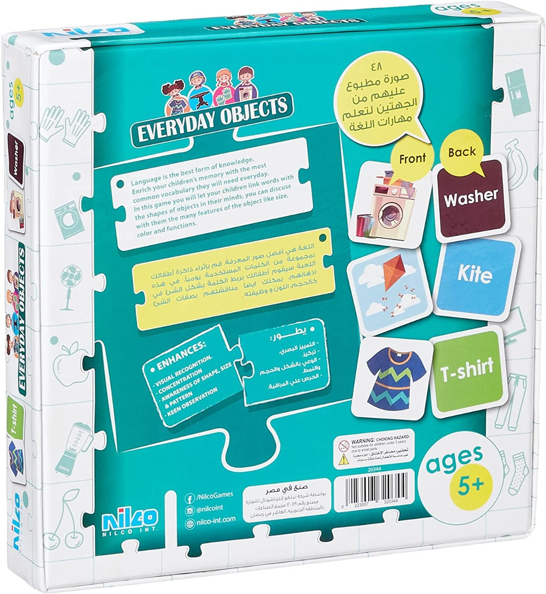 لعبة أحجية نيلكو التعليمية للأشياء اليومية (48 قطعة - رقم 20334) هي وسيلة رائعة لمساعدة طفلك على تنمية خياله وإبداعه. تحتوي على 48 بطاقة صور مطبوعة تساعد طفلك على التعرف على أسماء الأشياء الشائعة وتعلمها. صُنعت هذه المجموعة من مواد عالية الجودة لتوفير ساعات لا حصر لها من المرح والتسلية. تُساعد على تحسين المهارات الحركية، والتنسيق بين اليد والعين، والتمييز البصري، والتركيز، والوعي بالشكل والحجم والنمط، ودقة الملاحظة. مع هذه المجموعة، سيتعلم طفلك لغة المعرفة ويُثري ذاكرته بالمفردات الأكثر شيوعًا التي سيحتاجها في حياته اليومية. تُعد هذه المجموعة مثالية لتنمية خيال الأطفال ومهاراتهم اليدوية، وتُساعد على إبقائهم منشغلين ومستمتعين لساعات.
