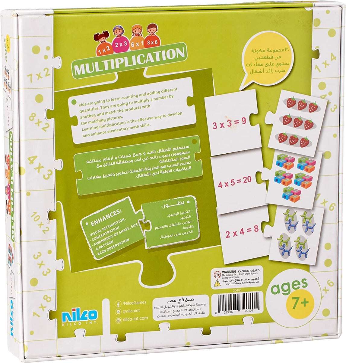 بطاقات نيلكو التعليمية لتعليم الضرب - 60 بطاقة - رقم: 20405، هي الطريقة الأمثل لمساعدة أطفالك على تعلم أساسيات الرياضيات. صُنعت هذه البطاقات عالية الجودة في مصر، وهي تجعل تعلم الضرب سهلاً وممتعاً. تحتوي كل مجموعة على قطعتين من الألغاز ذاتية التصحيح. تُظهر القطعة الأولى رقماً، بينما تُظهر القطعة الثانية صورة. من خلال مطابقة ناتج ضرب الرقم الموجود على البطاقة الأولى مع الصورة الموجودة على البطاقة الثانية، سيتعلم طفلك التعرف على عملية الضرب وفهمها. هذه المجموعة مثالية للأنشطة الفردية أو الجماعية في المنزل والفصل الدراسي. ستساعد طفلك على تنمية مهاراته في التمييز البصري والتركيز والملاحظة. سيتعلم طفلك من خلالها تمييز الأشكال والأحجام والأنماط، وسيزداد وعيه بكيفية عمل العالم من حوله. كما ستساعده على تطوير مهاراته في الرياضيات، وتعزيز ثقته بنفسه في فهم المسائل الرياضية وحلها. بطاقات نيلكو التعليمية للضرب - 60 بطاقة - رقم: 20405 هي طريقة ممتازة لمساعدة طفلك على تعلم أساسيات الضرب. مع هذه المجموعة، سيستمتع طفلك ويتعلم في نفس الوقت.