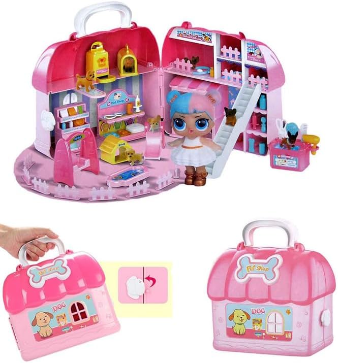- بيت مفاجآت الحيوانات الأليفة، ألعاب وردية للأطفال مع كلب قطيفة - رقم: 72699