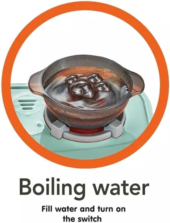 - يتدفق الماء من الحوض، ويحاكي غطاء الموقد أصواتًا حقيقية وهو مزود بمؤثرات ضوئية.