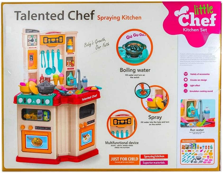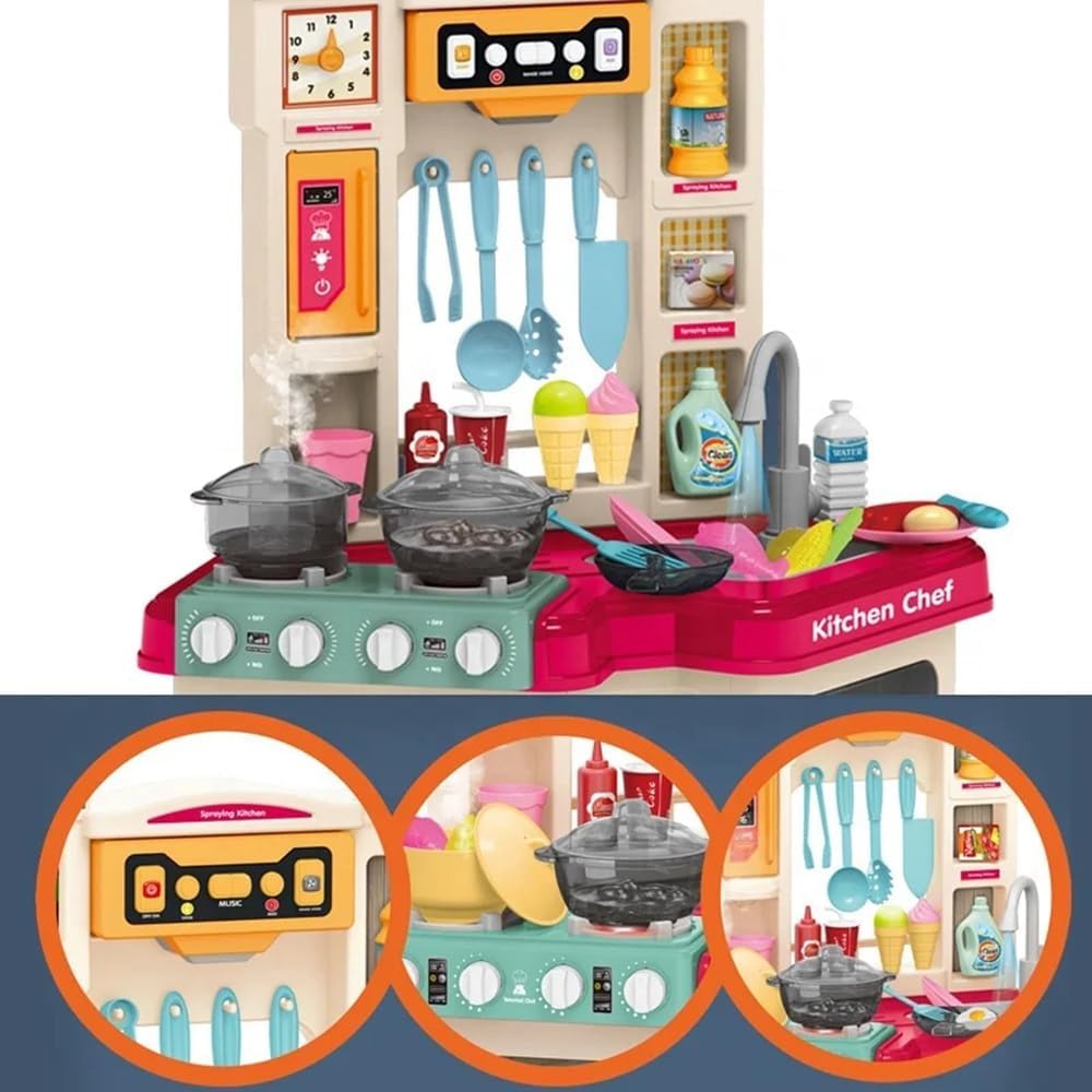 - مجموعة ألعاب مطبخ للأطفال مكونة من 67 قطعة، لعبة رش الماء للأطفال مع أضواء وأصوات - رقم: 922-112