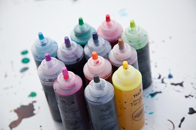 - زجاجة سعة ١٢٠ مل: طريقة سهلة لصبغ الملابس بنفسك، تُضفي لمسةً نابضةً بالحياة على القمصان والأقمشة. لا حاجة للنقع في رماد الصودا، فقط أضف الماء، رجّ الزجاجة، واضغط عليها. الأصباغ ثابتة اللون ولا تتلاشى بالغسيل، وبفضل إمكانية مزجها، يمكنك ابتكار ألوانك الخاصة.