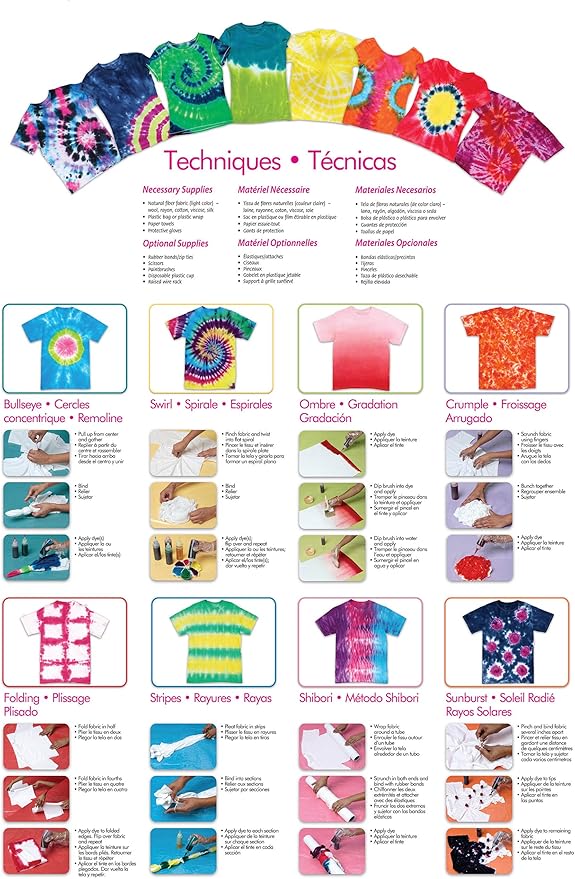 - جودة عالية: باستخدام أصباغ عالية الجودة، غير سامة، مجموعة ألوان ربط الصبغ DIY مكونة من 8 ألوان لأعمال فنية يدوية على الملابس والأقمشة، تكفي لصبغ ما يصل إلى 30 مشروعًا