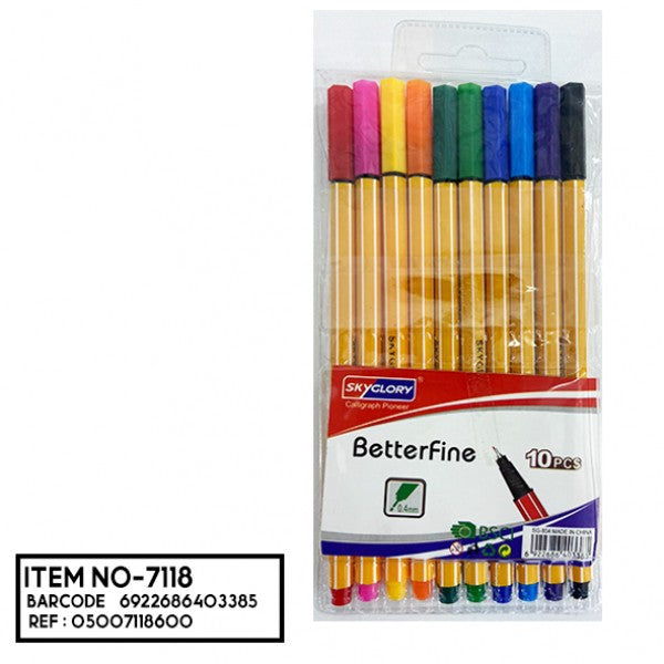 قلم سكاي غلوري بيتر فاين 0.4 مم، مجموعة من 10 ألوان - رقم: SG854