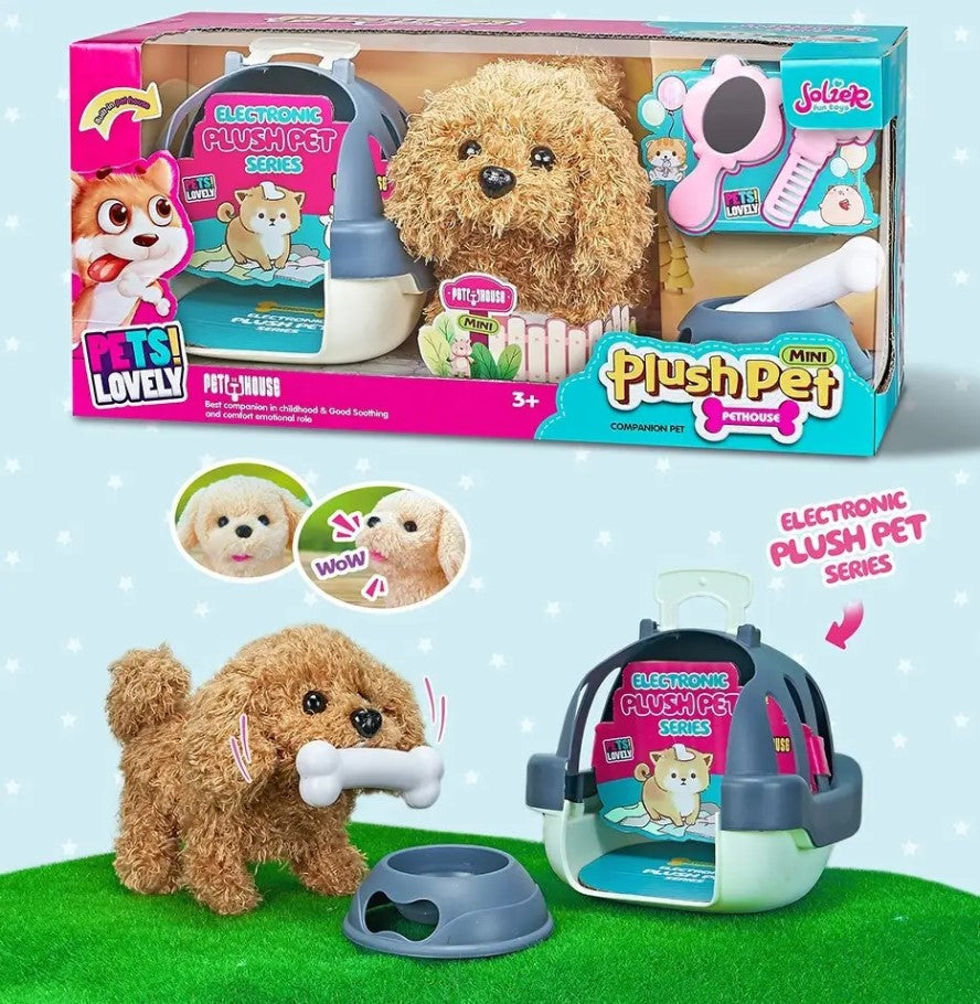 - لعبة كلب تفاعلية ناعمة مع حامل - مجموعة حيوانات أليفة صغيرة من القطيفة - رقم: MC-1015