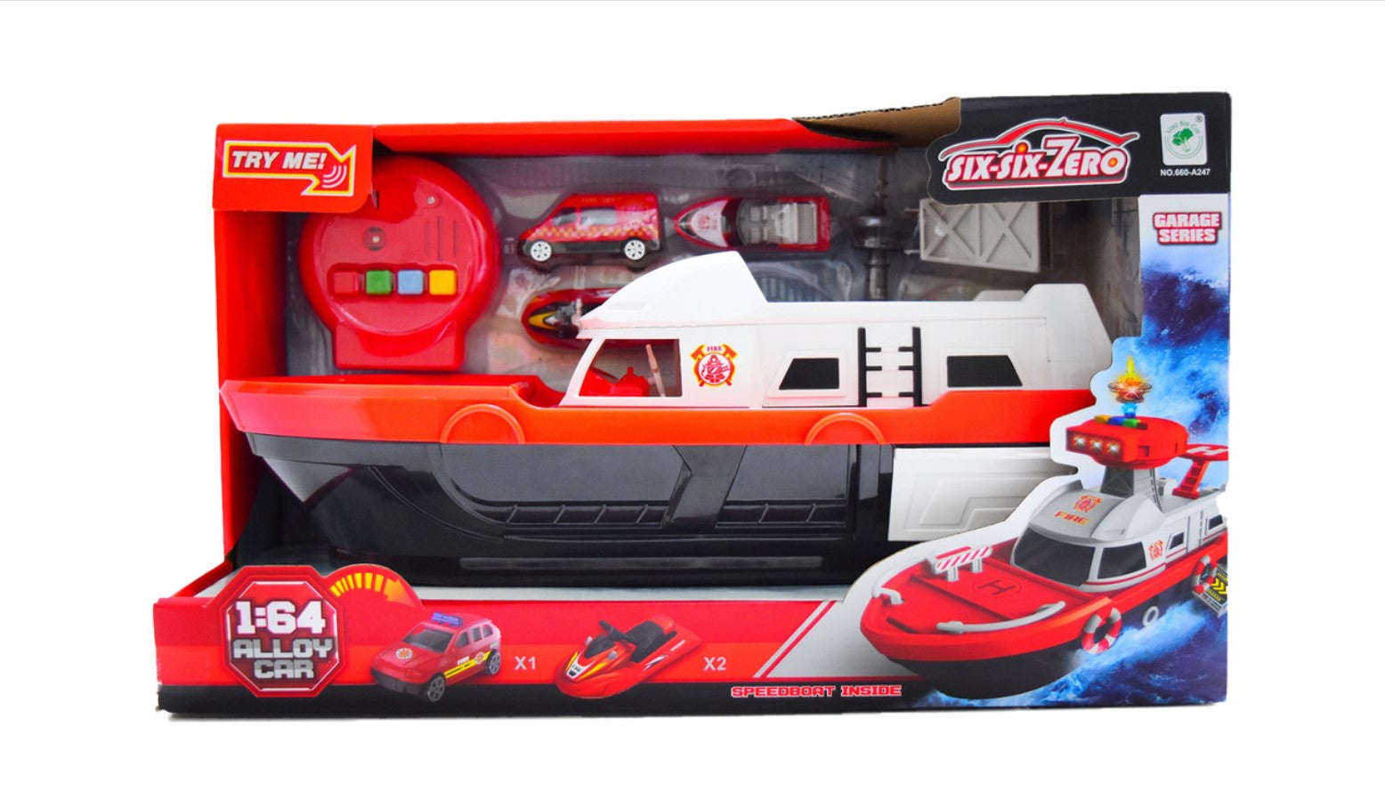 - مجموعة ألعاب قارب الإطفاء للخدمات الخاصة بمقياس 1:64 مع قارب كرتوني كهربائي وأضواء وأصوات - رقم: 660