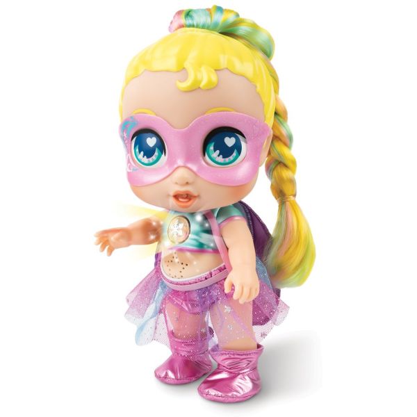 - دمية رائعة فائقة الجمال مع حيوان أليف، فستان لامع، شعر أشقر، قوة خارقة - رقم: SC042A2