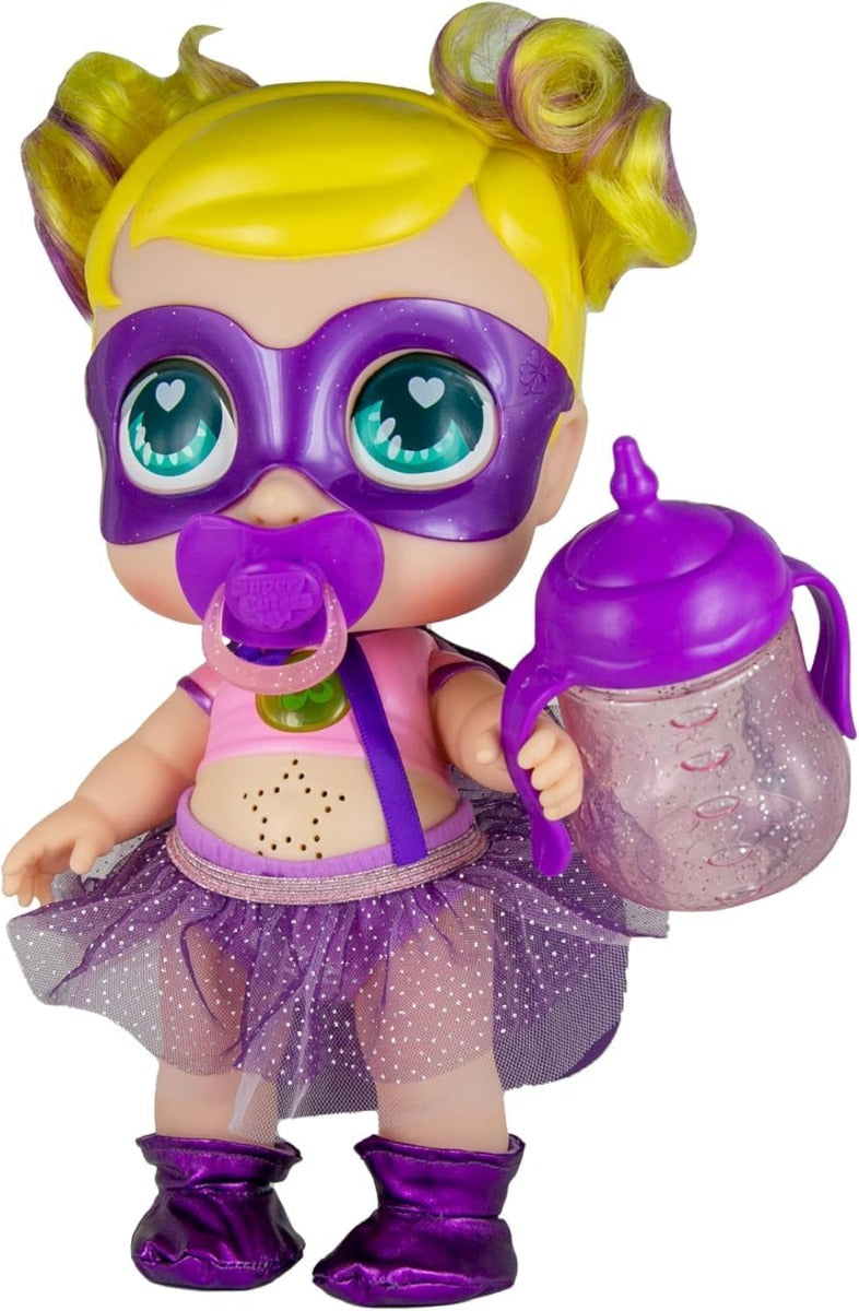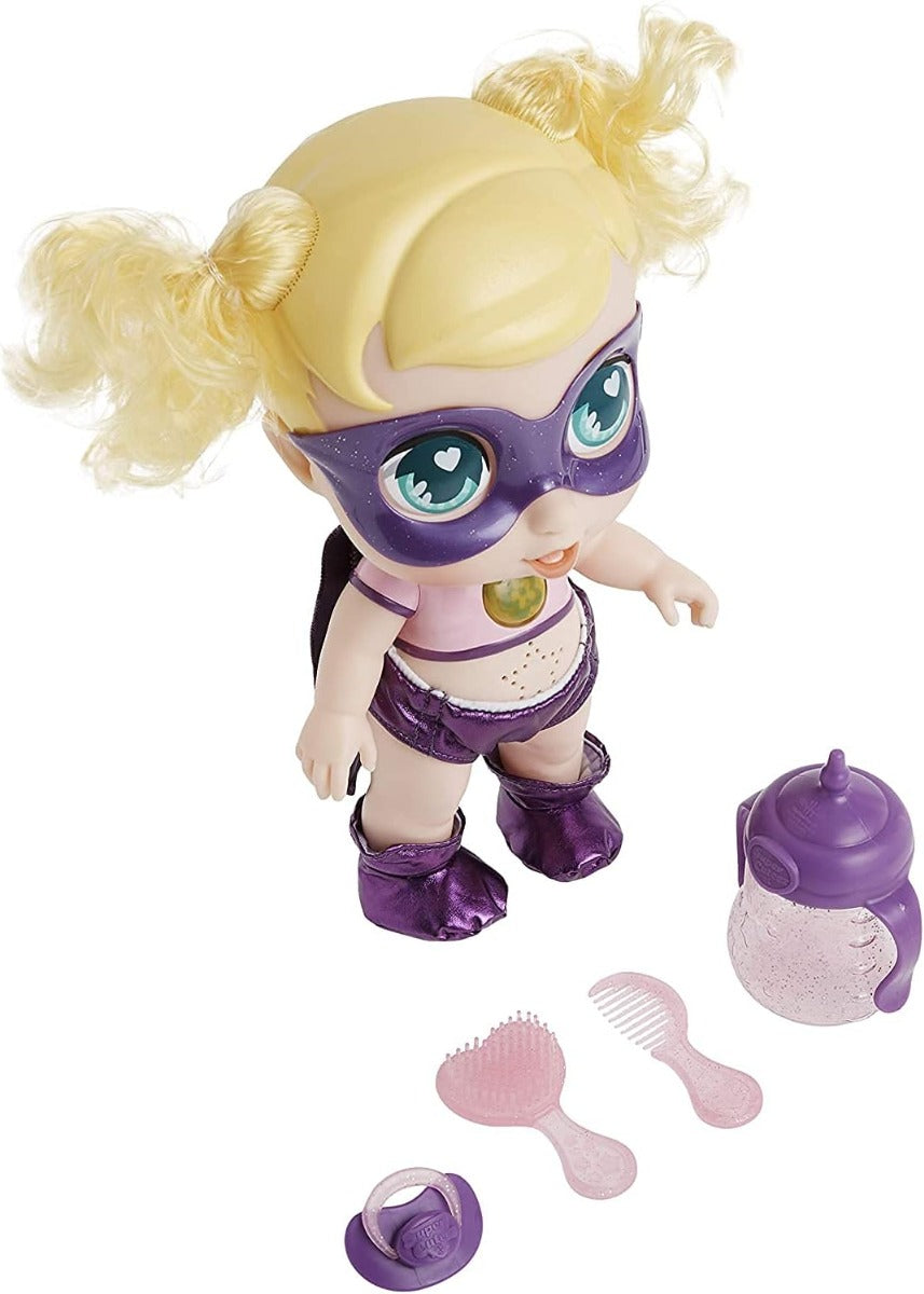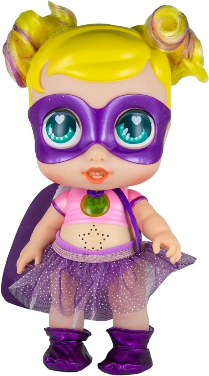 - تتميز هذه الدمية البطلة الساحرة بقناع أرجواني مميز وفستان توتو لامع يأسر خيال الصغار.