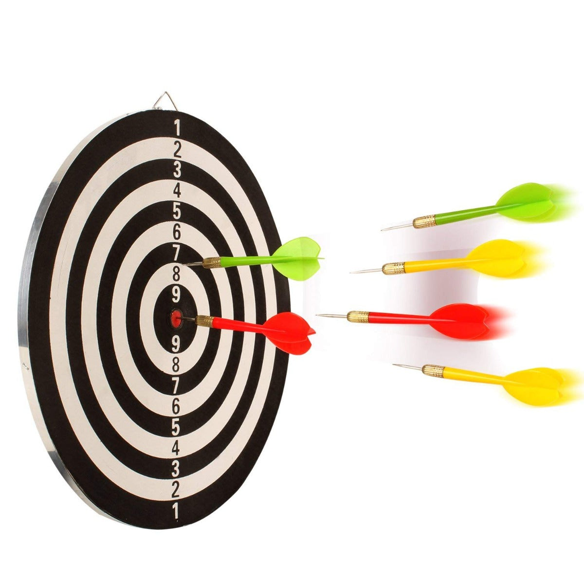 - لوحة رمي السهام ذات وجهين مع أرقام مطبوعة واضحة للعيان.
