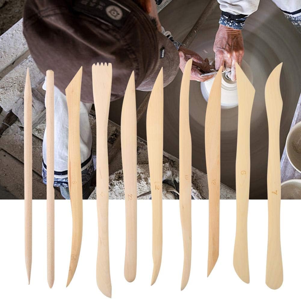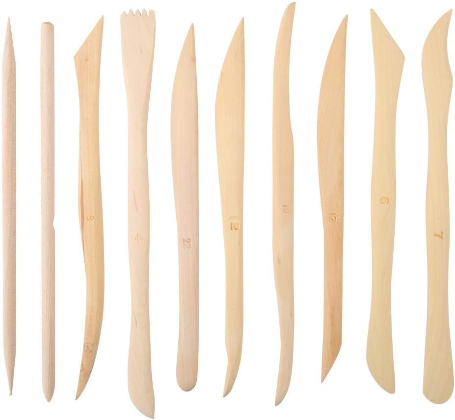 - أدوات نحت وتشكيل الطين الخشبية - 10 قطع