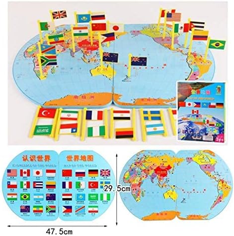 أحجية تركيب الصور الخشبية لخريطة العالم مع العلم - 47.5 × 29.5 سم