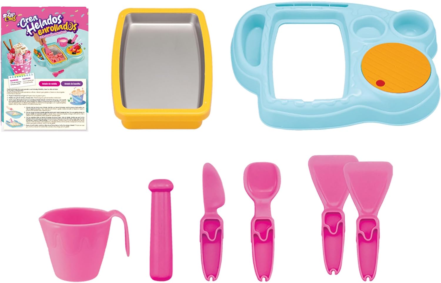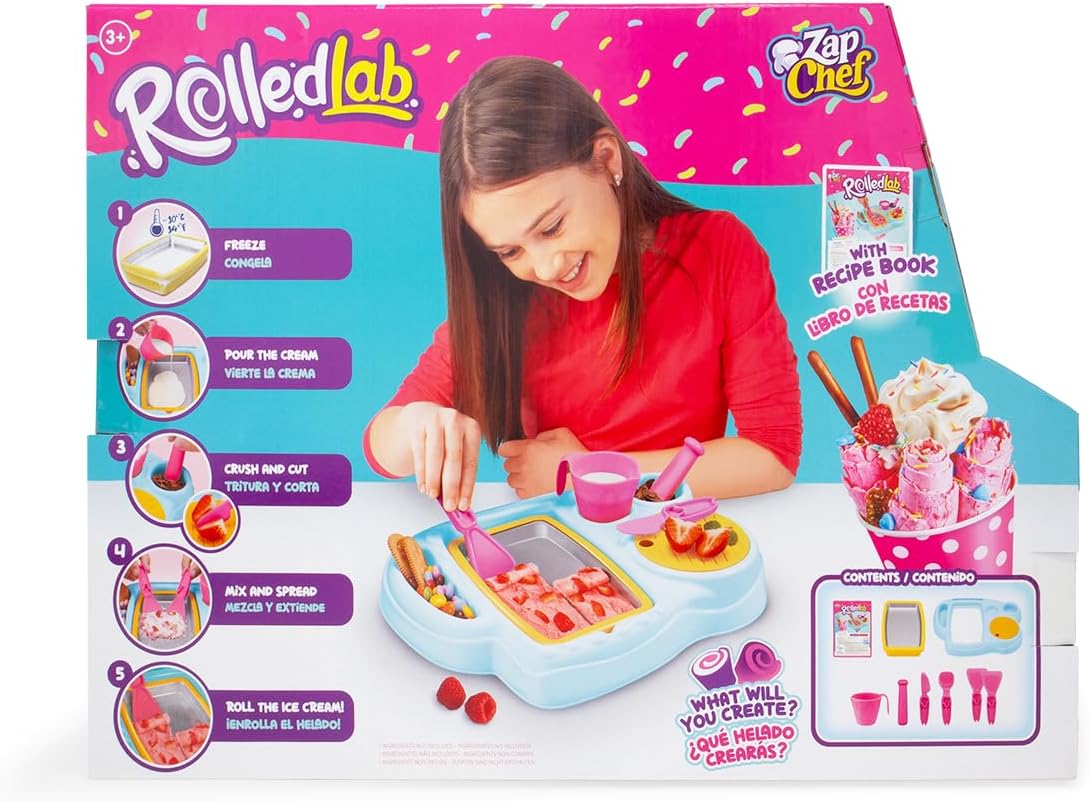 نقدم لكم جهاز Zap Chef لصنع الآيس كريم الملفوف، بتقنية التجميد السريع لتحضير آيس كريم فوري. يتميز هذا الجهاز المبتكر بقدرته على صنع ما يصل إلى 500 مل من الآيس كريم الحقيقي، وهو مصنوع من بلاستيك آمن غذائياً وسهل التنظيف، ويمكن غسله في غسالة الأطباق لمزيد من الراحة. - يُعد هذا المختبر التفاعلي والممتع مثالياً للفتيات من سن 3 سنوات فما فوق، حيث يُضفي متعة صنع الآيس كريم على الحياة بطريقة آمنة ومثيرة.