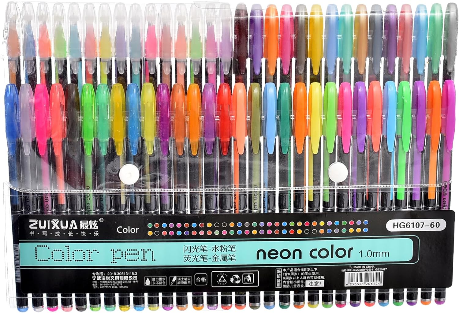 مجموعة زويكسوا من 60 قلم حبر جاف نيون - 1.0 مم ألوان معدنية - رقم: HG6107-60