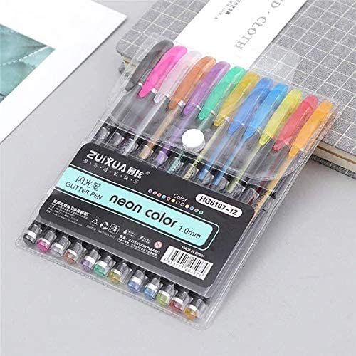 Zuixua Set of 12 Neon Gel Ink Pens-1.0mm Metallic colors - No:HC6407-12