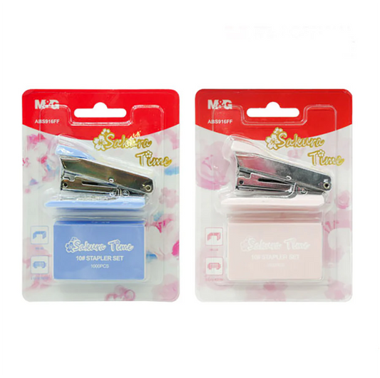 M&G Chenguang Sakura Time Mini Stapler Set, Compact Binding With No.10 Staples - No:ABS916FF