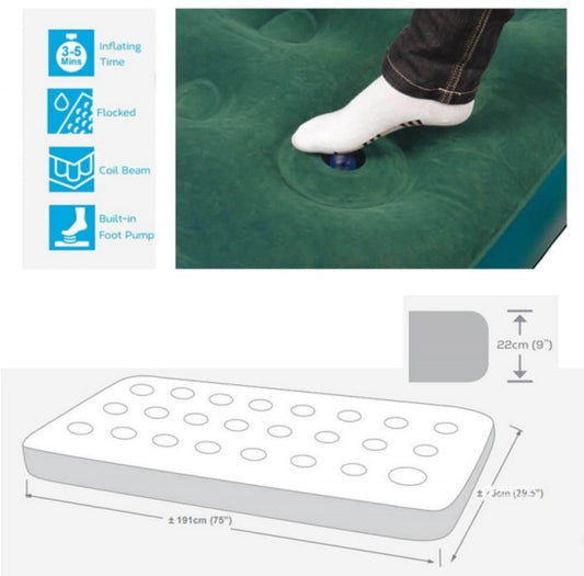 JILONG SINGLE SIZE FLOCKED COIL BEAM AIR Inflatable BED 191cm*75cm*22cm