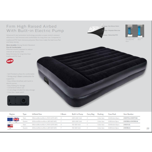 Jilong Avenli High Raised Airbed Twin Size 195cm x 96cm x 46cm inflatable with built-in electric pump -No:24017EU
