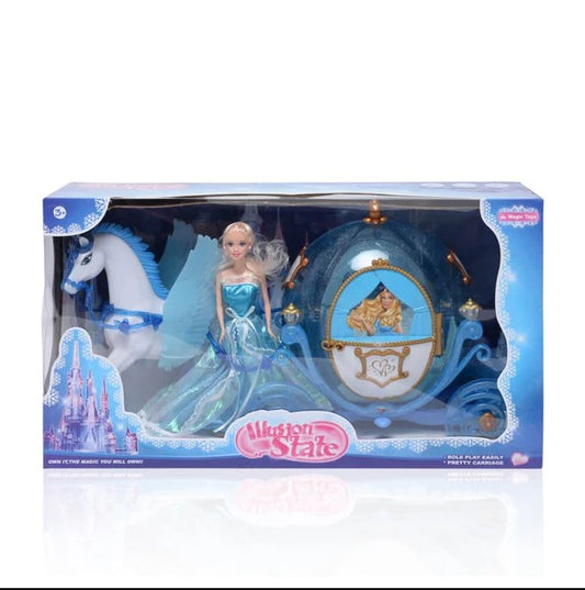 Princess and Carriage 3 Piece Set Includes Doll Carriage and Horse - No:2211A