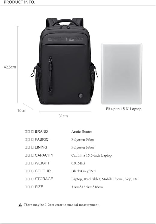 - Arctic Hunter Backpack for unisex Sleek 15.6-inch Laptop Bag 21L Medium Backpack Multi-pockets Water/Wear-resistant -No: B00534