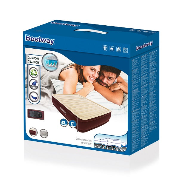 Bestway 2.03m x 1.52m x 43cm Comfort Cell New Comfort Raised Airbed(Queen)
