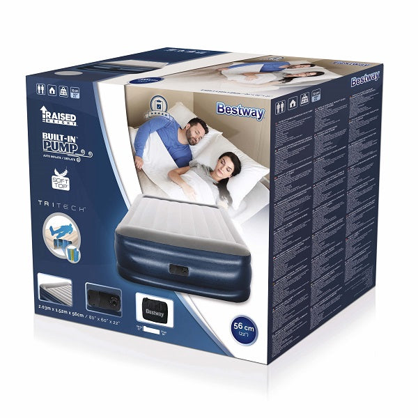 Bestway Tritech Airbed Queen Size Mattress Built-in AC Pump 2.03m x 1.52m x 56cm - No:67614