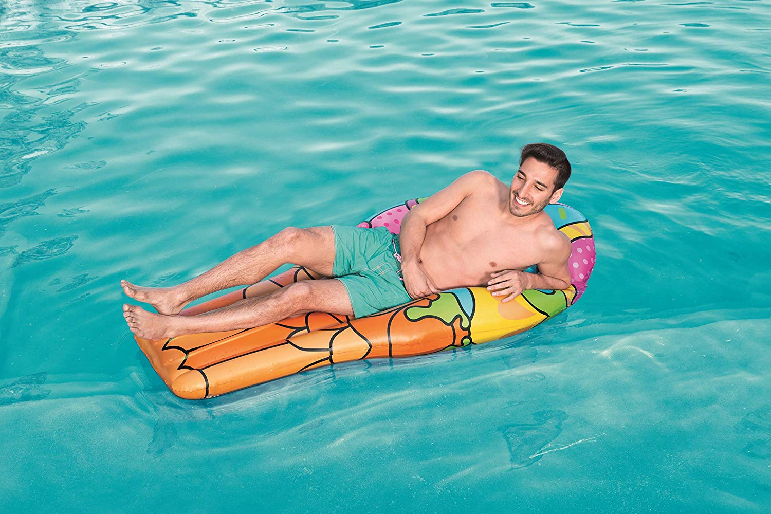 - Stylish inflatable mattress with drawn graphics in the form of ice cream will provide a great refreshing rest on the water during beautiful hot summer days.