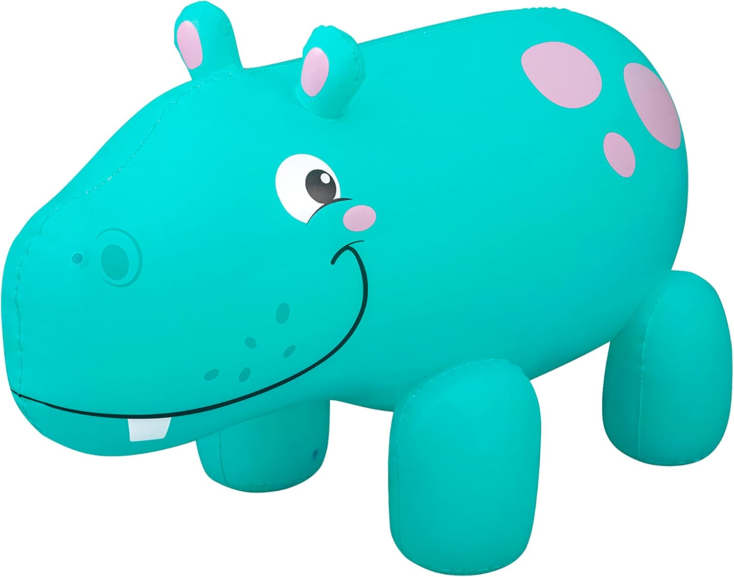 Simply inflate the hippo, fill the water chambers, then attach the water sprayer to a garden hose and the internal water chambers will keep the sprinkler stable as long as your kids want to splash, skip and play. The easy-to-use drain valve allows the sprinkler to be drained, deflated, and stored for many water adventures to come! - - Size: 2.00 m x 96 cm x 1.27 m (6 ft. 7 in. x 38 in. x 50 in.)
