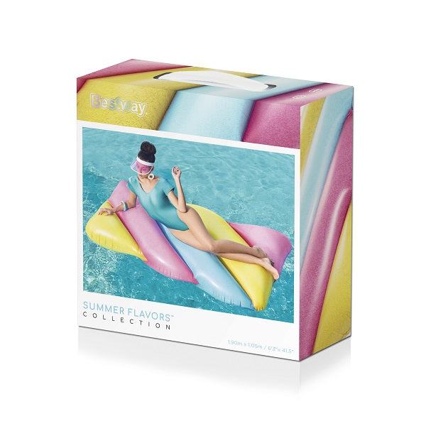 The Bestway Candy Lounge 1.90m x 1.05m No: 43187 is a sensational inflatable mattress that is perfect for swimming during the summer holidays. It has a fabulously colorful design...