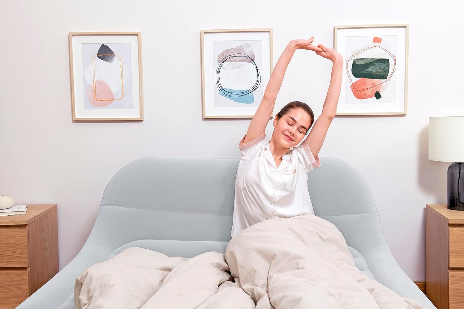 Wake up renewed and refreshed on the Bestway Tritech Sleek Flow Headboard Air Mattress!