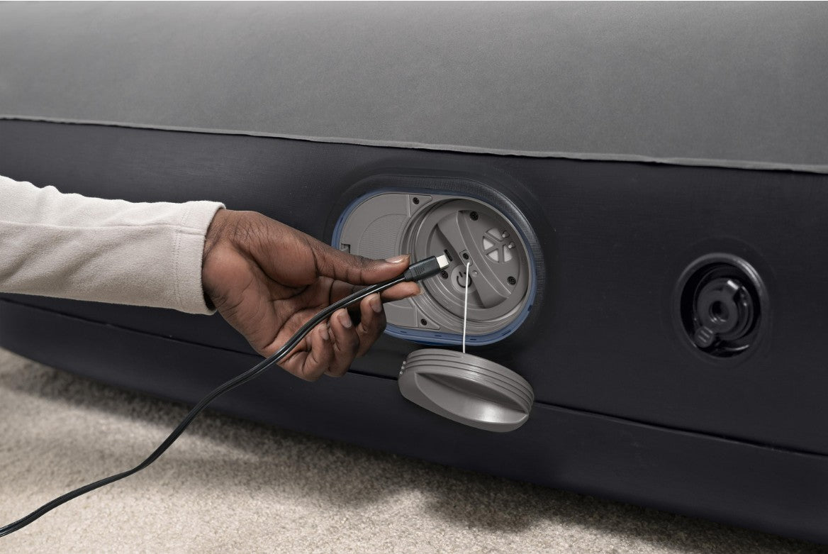 This bed features a built-in USB pump to provide fast, easy inflation. Whether you're on-the-go or at home, this bed will inflate in 3-4 minutes. Simply attach the included USB cable to a wall plug, car plug or portable battery pack. No power, no problem – this bed is also compatible with handheld pumps (not included).