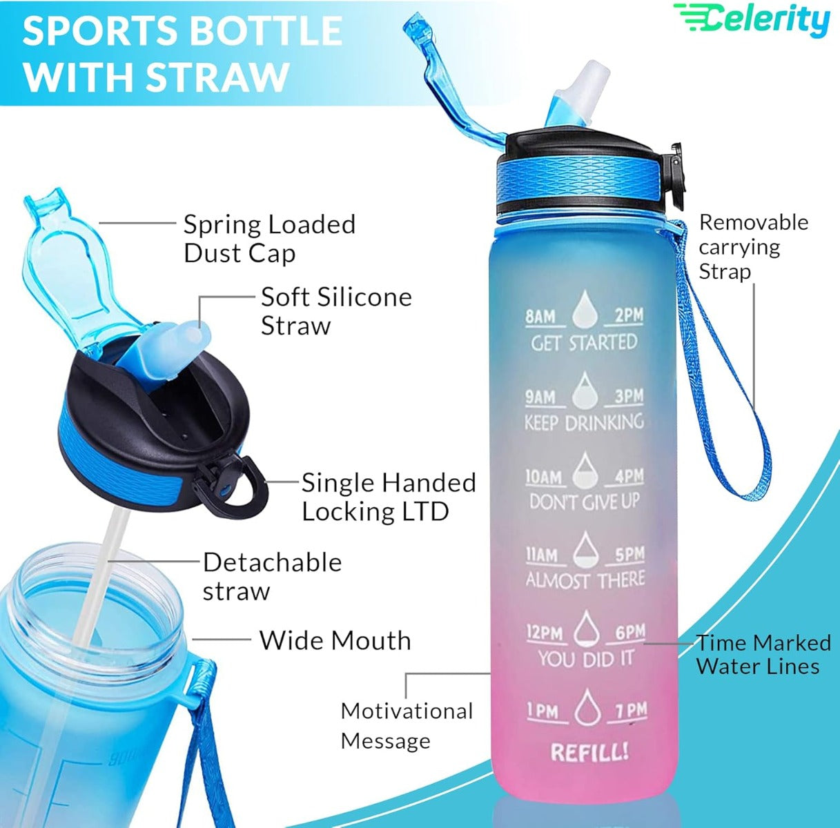 - BPA & TOXIC FREE MATERIAL:- Celerity Motivational Water Bottle is made of superior quality Tritan co-polyester plastic & 100% BPA & TOXIN/odor free and healthy for your daily water intake.