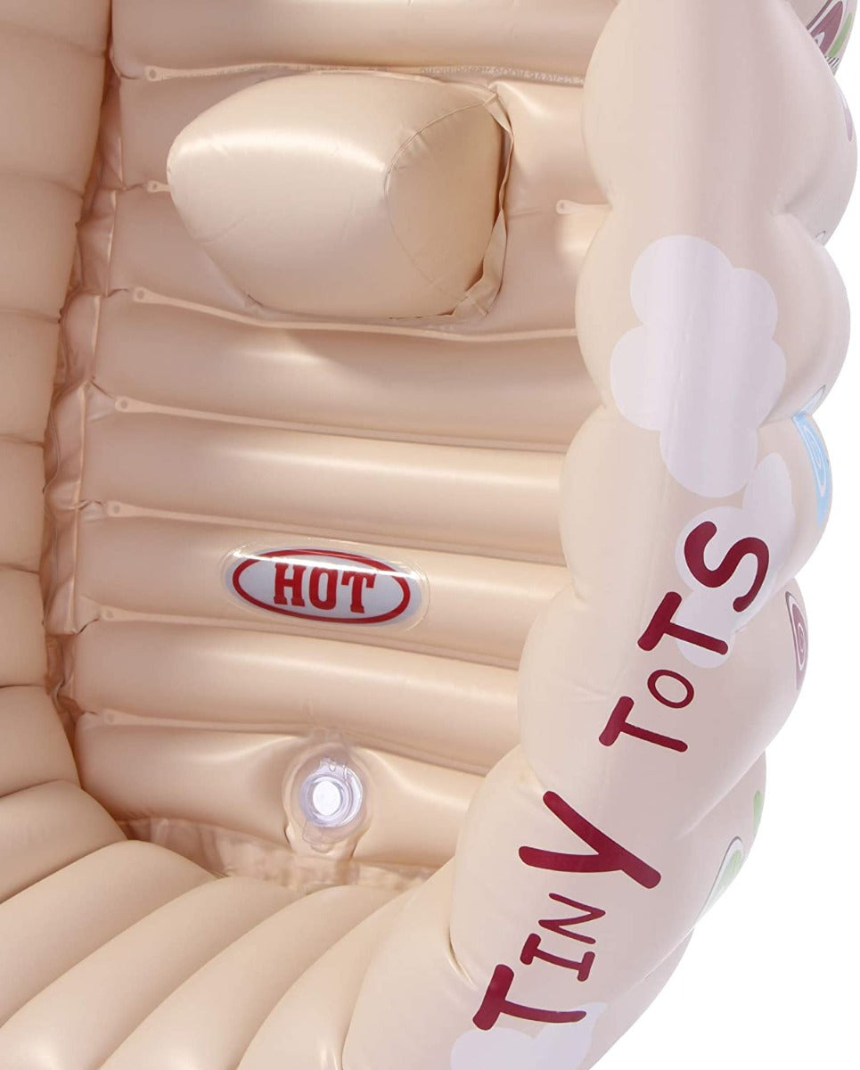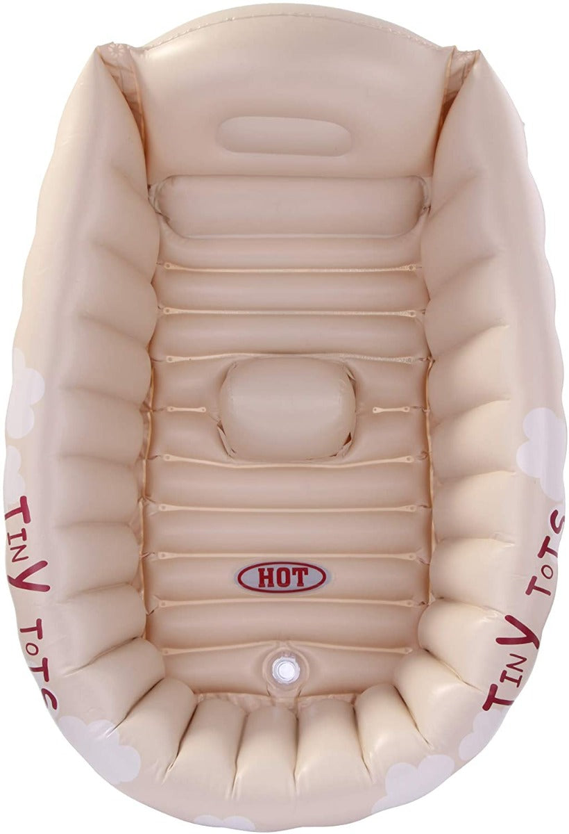 - Includes: 1 Tiny Tots Baby inflatable bath and a repair patch.