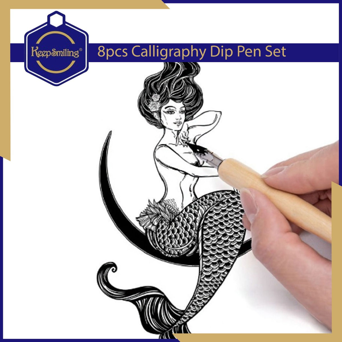 - The Keep Smiling E0354 7-Nibs Calligraphy Dip Pen Set provides you with a comprehensive selection of nibs to create your designs.