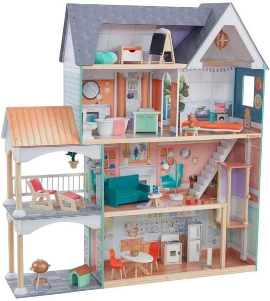 - Kidkraft Dahlia Mansion Wooden Dollhouse For 12-Inch Dolls - No:65987
