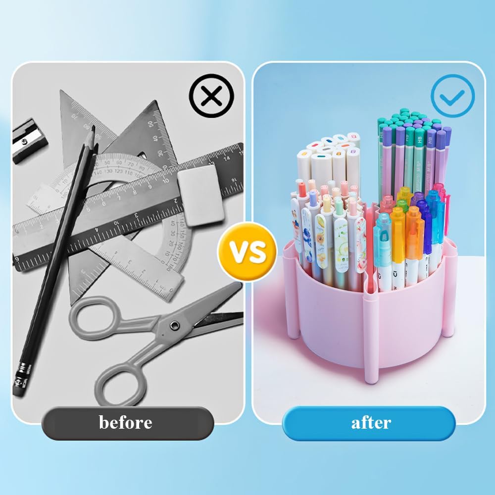 - 【360° ROTATION DESIGN】This pen holder is equipped with a base that can rotate 360 degrees and it rotates smoothly without getting stuck. The rotary desk organizer design allows you to easily access your pens, pencils and other supplies from any angle.