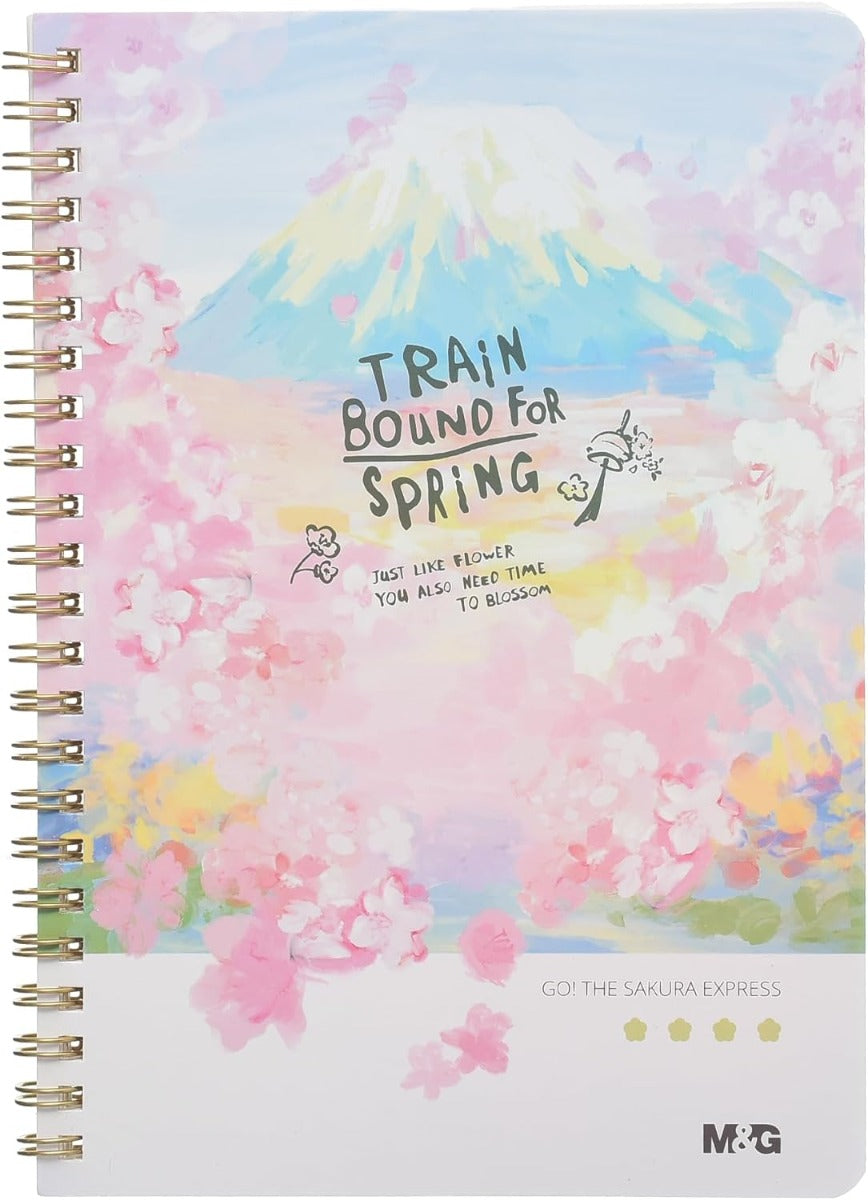 M&G Chenguang Sakura Time Spiral Notebook, Compact Note-Taking, A5 Lined, 60 Sheets - No:APNDC010