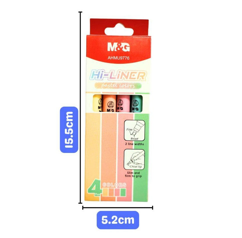 M&G Chenguang Set of 4 Hi-liner Pastel Highlighter Set, Soft Marking, Chisel Tip, Non-Toxic Ink - No:AHMU9776